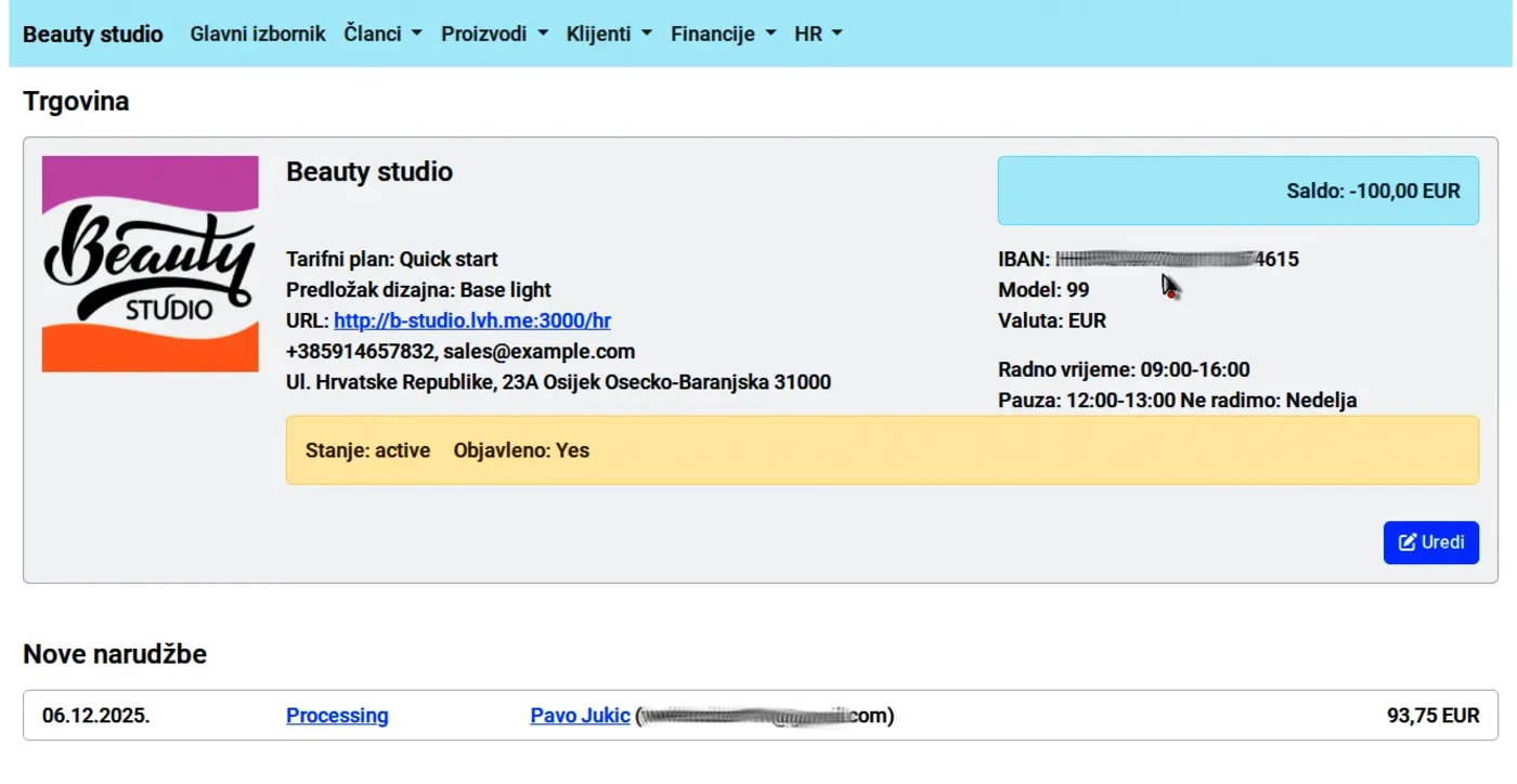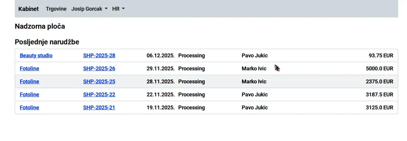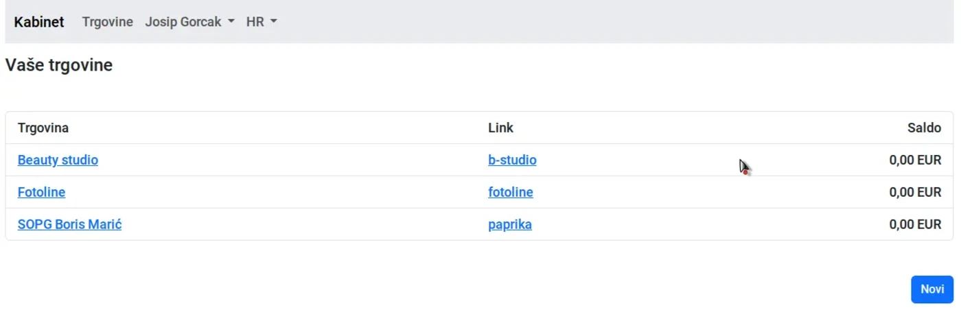Trgovine — popis svih vaših trgovina. Ako imate više trgovina, prvo odaberite onu s kojom želite raditi.